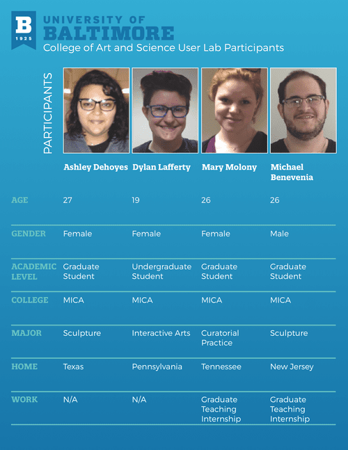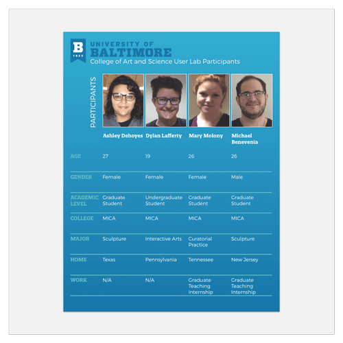 Center Stage, a local theatre located in midtown, Baltimore, MD asked the students of University of Baltimore to design an unique and interactive experience for visitors. The purpose of the interaction is to increase the number of visitors, as well as attract a larger and more diverse target audience. As a group, Rhiannon Fox, Kate Coates, and Suzanne Royer, and myself included worked collaboratively in a team to brainstorm, draft, and execute a user experience that would imbue “access for all”, prime the audience for the Center Stage production, as well as deepen the storytelling, all in a space that crosses the digital and physical world.